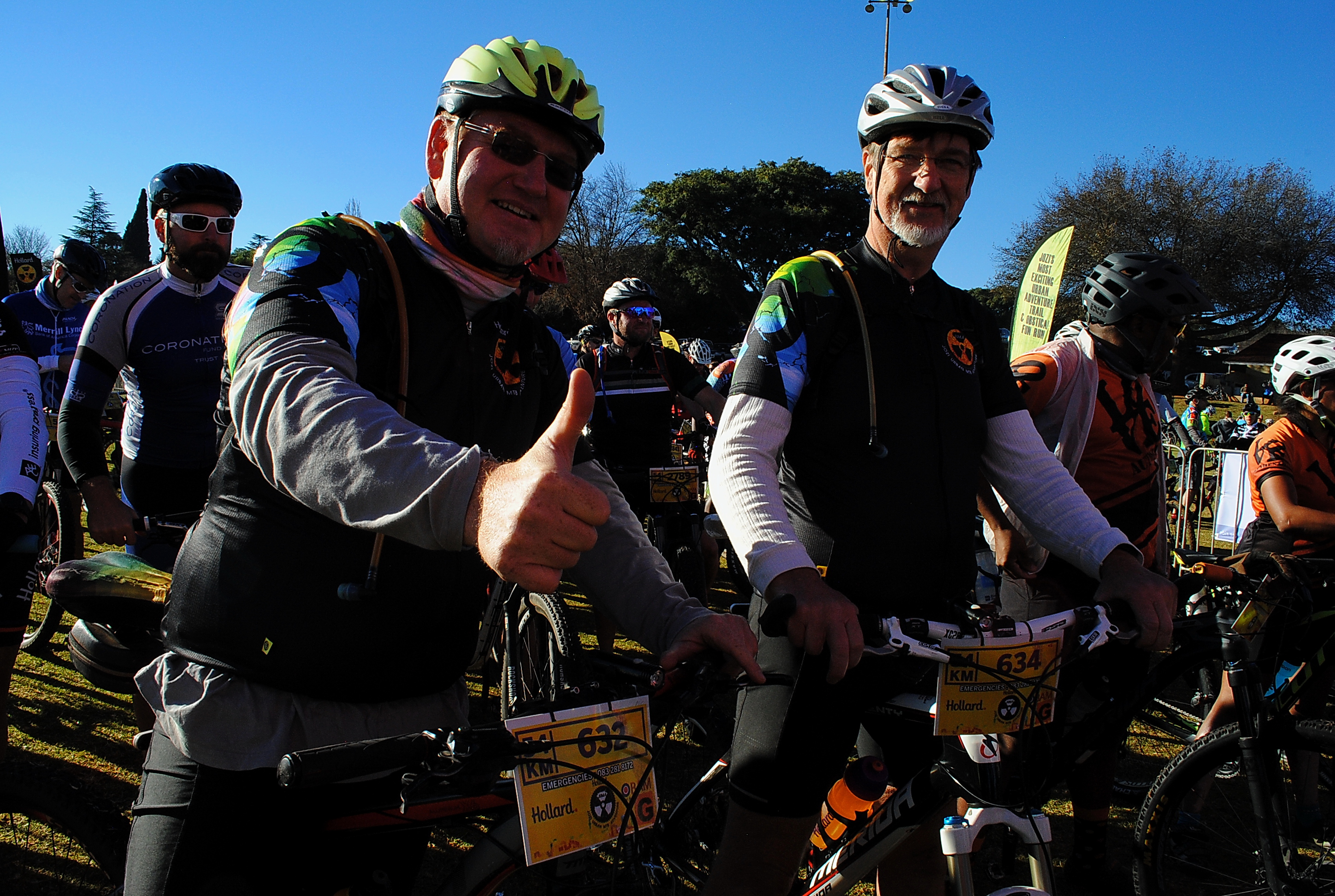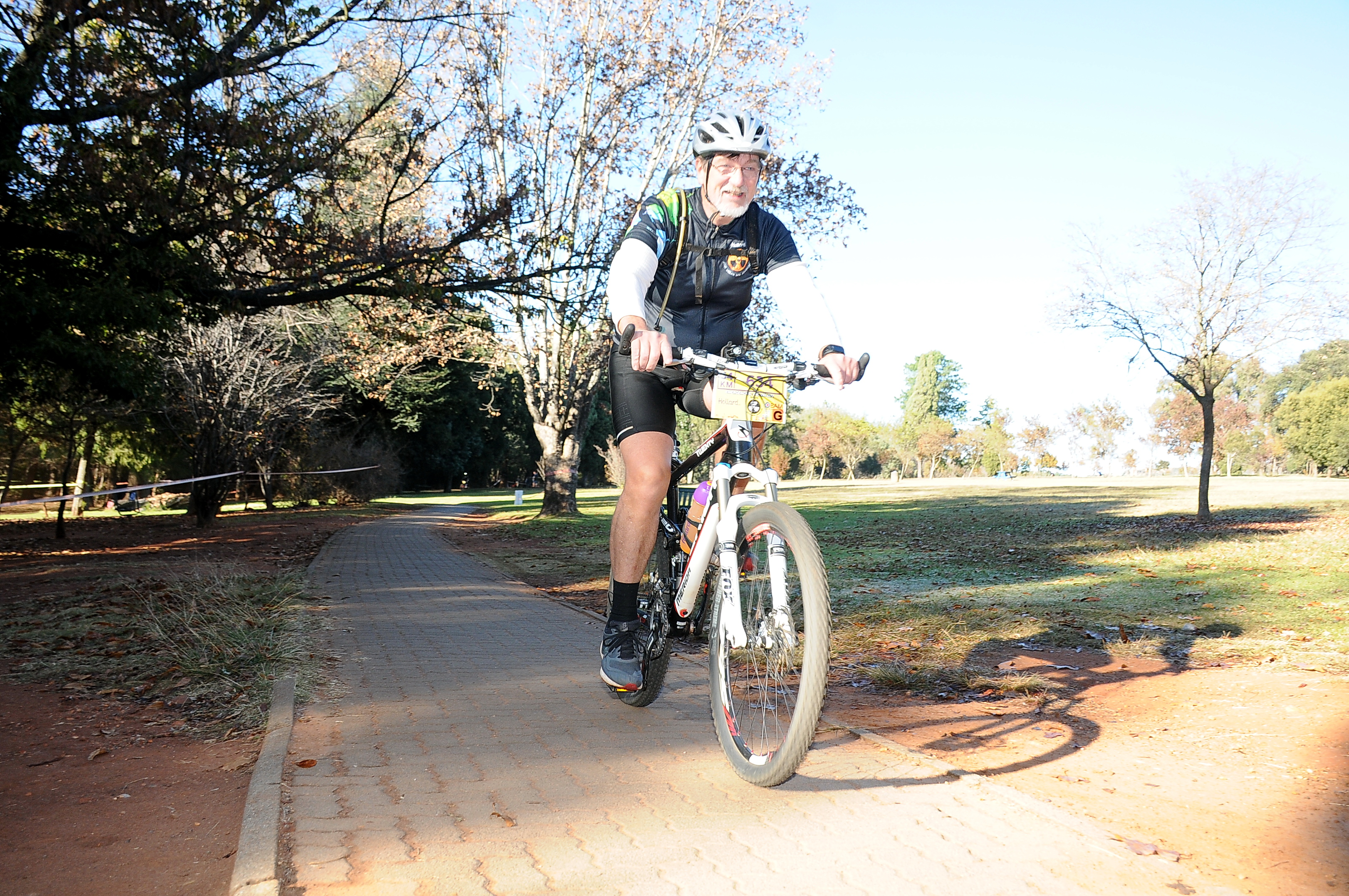 It was very cold when we arrived at Marks Park and I needed a toilet seriously. There were a bunch of temporary toilets and I hate those, but there was no option but to avail myself of it. Luckily it was still early in the morning and they were clean and fully operational with all the necessary consumables well stocked up. After that we went to the starting point where massive groups of people were still waiting to move into the starting line-ups. Music was playing and there was a guy with a loud speaker loudly commenting and interviewing some of the people in the starting line-ups. My friend and I moved as close to the front as we could in our group and waited just behind a bunch of fast looking fit and young riders that we knew were going to ride at a serious pace. I wanted to go for a pee again but all the toilets were occupied with long queues and I didn’t want to lose my position. My buddy laughed at me and just a few minutes later he had to go. I decided to ride as is because I knew it wouldn’t be a problem once I started riding. We thought that the groups were far enough spaced from each other that we would not encounter any riders from the previous groups on the trail. My bike was an antique in the presence of glittering new yuppie specials. If their bikes were an indication of their skills we were in trouble.