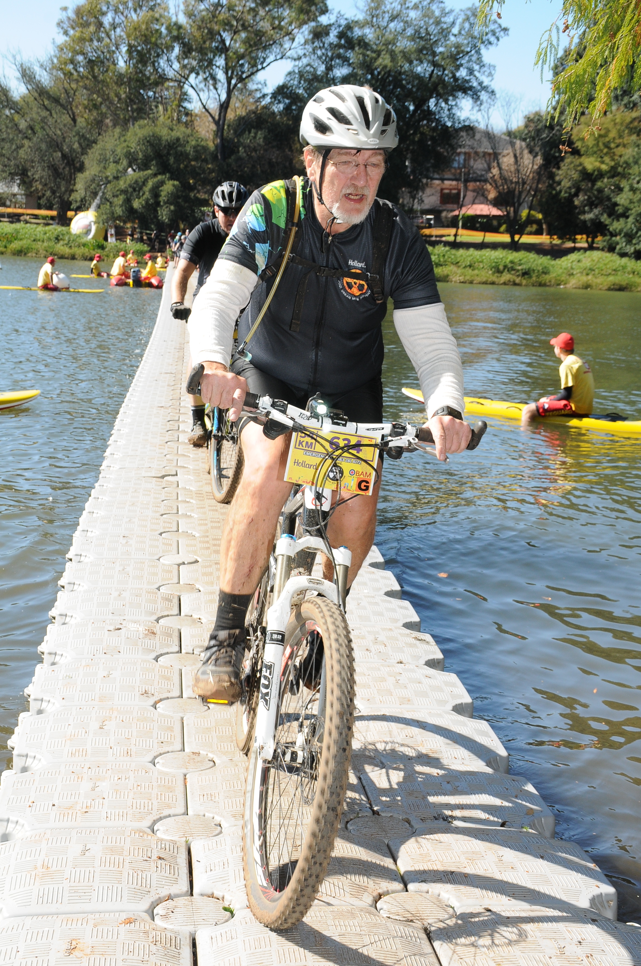 It was while riding through the longest tunnel on the trail, just after the exit and still in the channel that I hit a very slippery piece of slime and went down hard. My head and right shoulder hit the concrete wall and my right thigh hit the concrete floor. Two riders passed me asking if I was okay. I told them I don’t know, it will take a while before I can tell them the answer to that question. They thought if I am talking I must be okay and raced on. I would have done the same. I got up from that fall, my race only half run at the time and continued as fast as I could. After that I had a foot strike coming out of a river and rode myself out of one of my shoes. It took a while to get back on the bike and had to pass around 15 riders that passed me while I was refitting my shoe.
