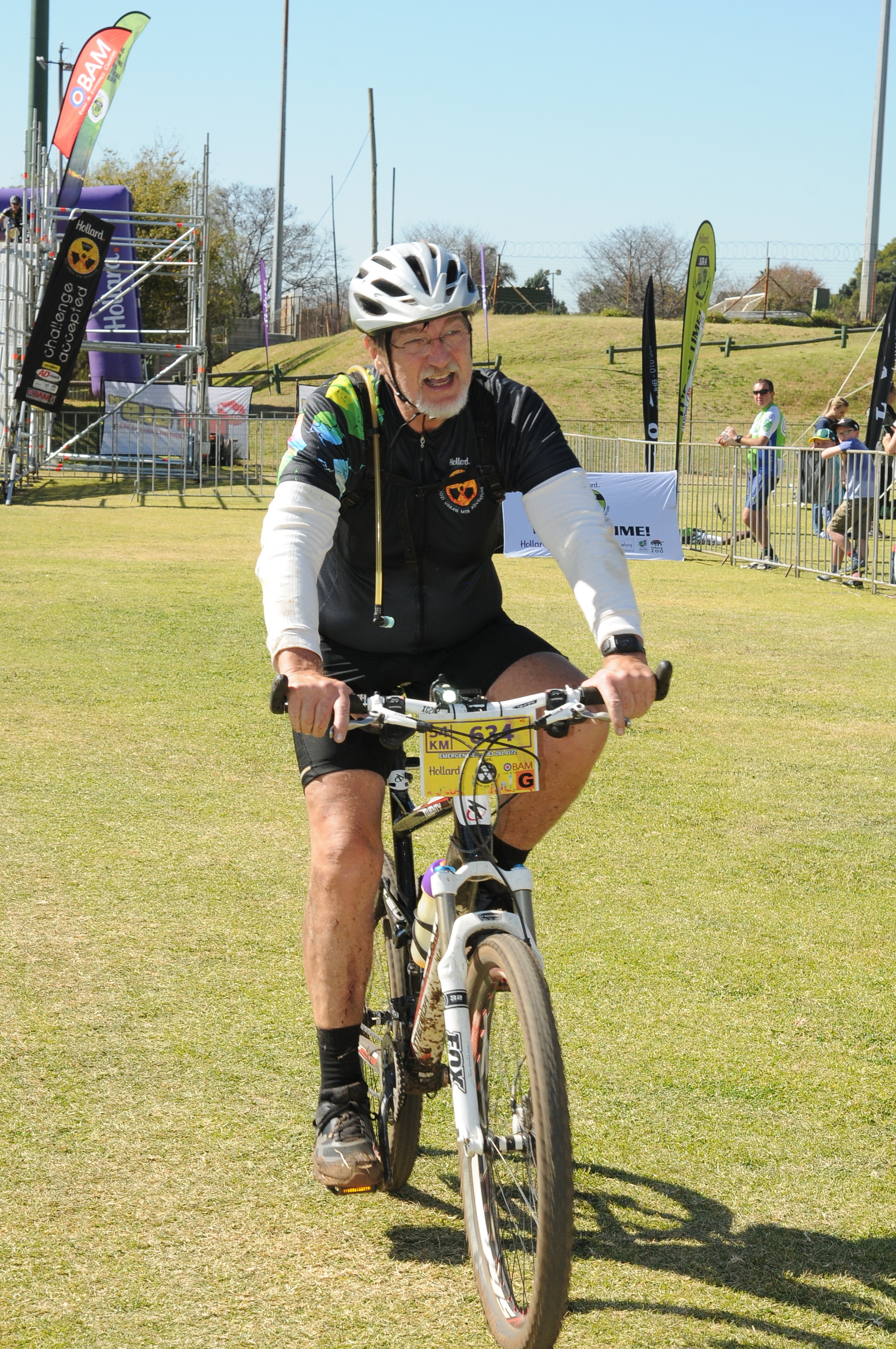 I wasn’t tired and I couldn’t believe that the people thought it was an achievement to finish the race. I got my finisher’s medal and waited for my buddy to come home. It took more than an hour and he didn’t even see me cheering him through the end-point. I had to walk quite a distance to find him where he looked like he was praying as he stood over his bike holding his hand over his bent-down head and his eyes closed. As I came closer I saw his torn cycling pants and had to learn that he came down twice and the second time tore his pants almost completely off his body. He also started experiencing extremely bad stomach pains from around halfway and just finishing was a challenge. When he started feeling dizzy I offered to take him to a doctor or hospital or look for a medical tent but he just wanted to go home, so I took over, put the bikes on the rack and drove him home.